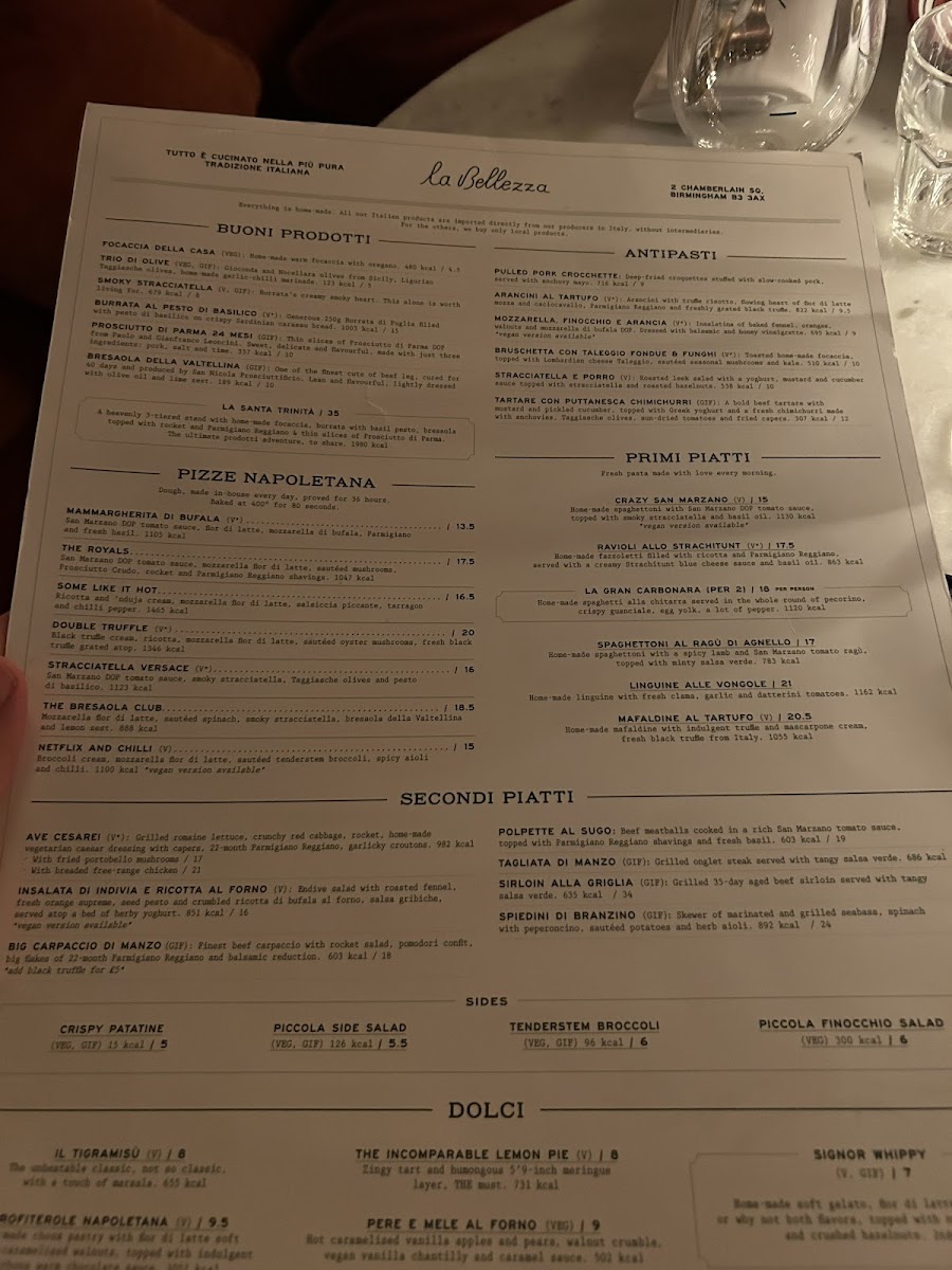 Welcome to La Bellezza Birmingham, a gem nestled in the heart of Paradise, Birmingham. This exquisite Italian restaurant invites you to indulge in a thoughtfully crafted menu that showcases the finest flavors of traditional Italian cuisine. From the robust Crazy San Marzano to the savory Mafaldine Al Tartufo, each dish reflects a commitment to quality and authenticity.